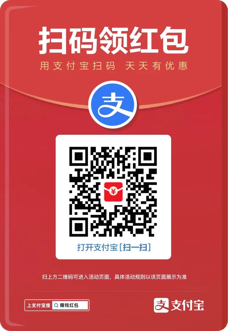 1、扫描上方支付宝二维码领取红包。
