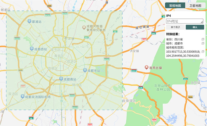 该功能仅支持ip4地址进行查询,且查询结果只包含省市及区域经纬度信息。