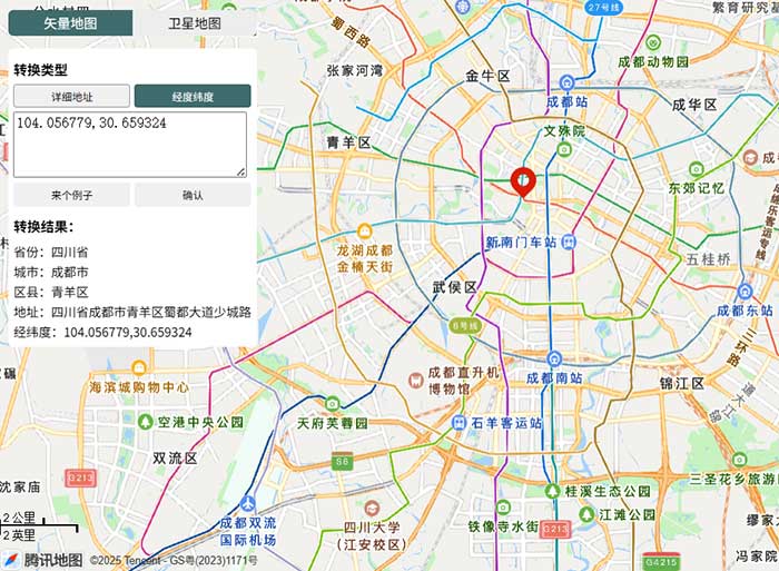 详细地址:输入框中输入详细地址,点击“确认”查询详细地址对应的经纬度信息。